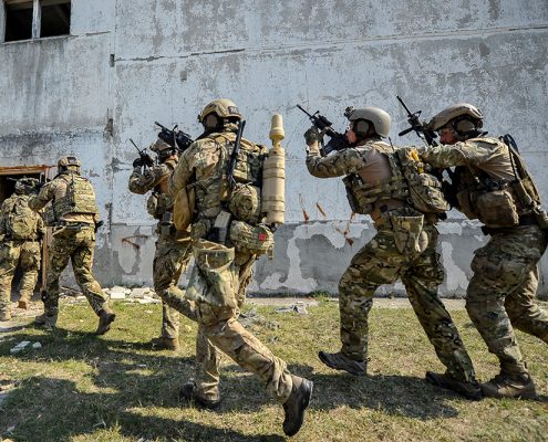 Soldier equipped with Spectra Group’s GENSS tactical radio system during field operations, demonstrating secure beyond line of sight communications.